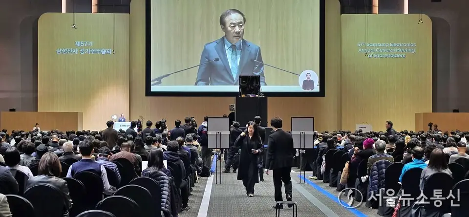 【서울 = 서울뉴스통신】 이민희 기자 = 삼성전자는 18일 경기도 수원시 수원컨벤션센터에서 제57기 정기 주주총회를 열고 전 영역에 걸친 AI 혁신 사업전략을...