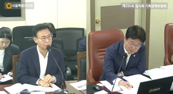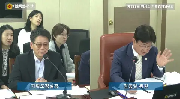 추경안에 대해 질의응답 진행 중인 문성호 서울시의원(우)과 여장권 서울시 교통실장. (사진=서울시의회 제공) 2026.04.23, snakorea.rc@gmail.com , *재판매 및 DB 금지【서울 =...