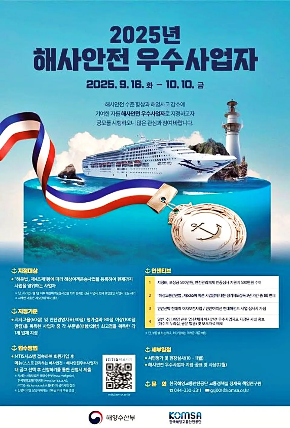 【서울 = 서울뉴스통신】 최정인 기자 = 해양수산부가 해상 여객선사의 안전 경영 문화 확산을 위해 ‘2025년 해사안전 우수 사업자’ 공모를 실시한다. 해수부는...