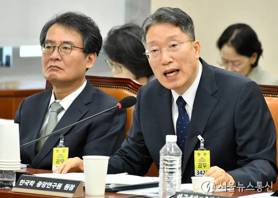 【서울 = 서울뉴스통신】 송경신 기자 = 김낙년 한국학중앙연구원장이 16일 서울 여의도 국회 교육위원회에서 열린 국정감사에서 의원 질의에 답하고 있다. 2025.10.16. /...