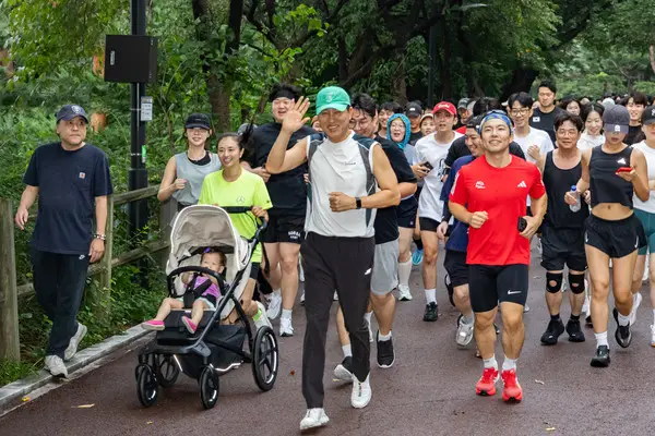 【서울 = 서울뉴스통신】 신현성 기자 =오세훈 서울시장이 6일 아침 러닝 번개 '남산런'에 참가해 시민들과 남산 북측 순환로를 달리고 있다. 2025.09.06/서울시...