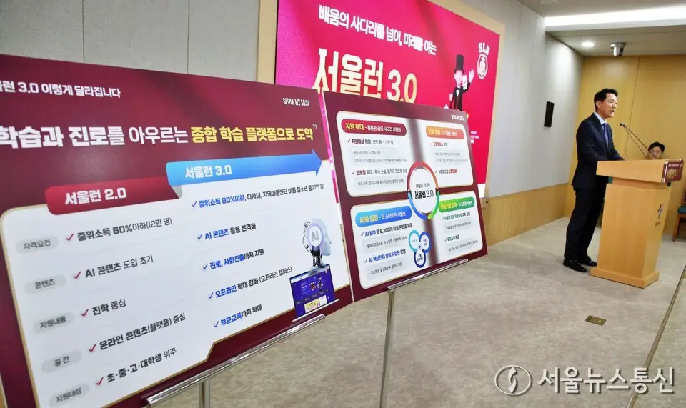 【서울 = 서울뉴스통신】 이민희 기자 = 오세훈 서울시장이 15일 서울 중구 서울시청 브리핑룸에서 열린 '서울런 3.0 추진계획' 기자설명회에서 발언을 하고...