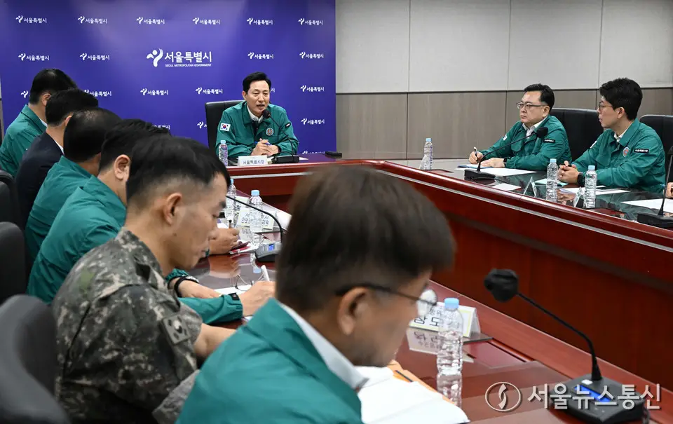 【서울 = 서울뉴스통신】 이민희 기자 = 오세훈 서울시장이 18일 오후 서울 중구 서울시청에서 열린 '2025년 을지연습 상황보고 및 전시 현안과제 토의'에서...