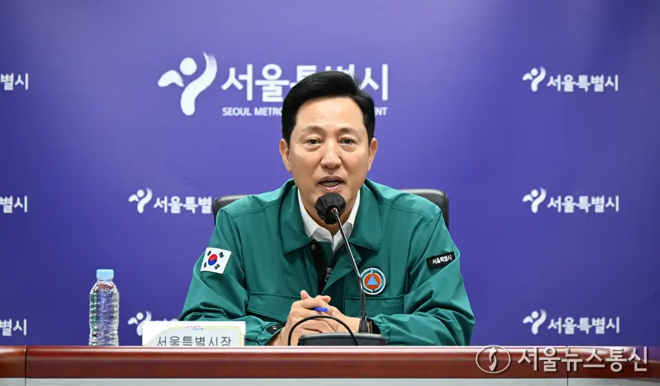 【서울 = 서울뉴스통신】 이민희 기자 = 오세훈 서울시장이 18일 오후 서울 중구 서울시청에서 열린 '2025년 을지연습 상황보고 및 전시 현안과제...