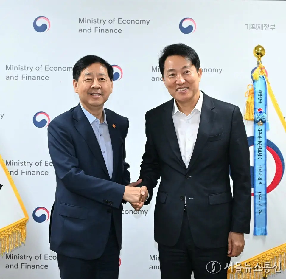【서울 = 서울뉴스통신】 이민희 기자 = 오세훈 서울시장은 14일 오전 정부서울청사에서 구윤철 경제부총리 겸 기획재정부 장관을 만나 서울시에만 적용되는 국비 보조사업...