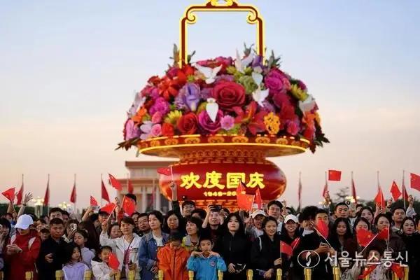 【서울 = 신화/서울뉴스통신】 권나영 기자 = 1일 아침 첫 햇살과 함께 중화인민공화국 수립 76주년을 맞이했다. 도시에서 농촌, 북에서 남에 이르기까지...