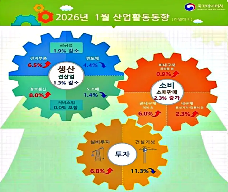 【서울 = 서울뉴스통신】 김부삼 기자 = 반도체를 중심으로 제조업이 주춤하면서 1월 산업생산이 석 달 만에 감소세로 전환했다. 다만 소비와 설비투자는 증가하며...