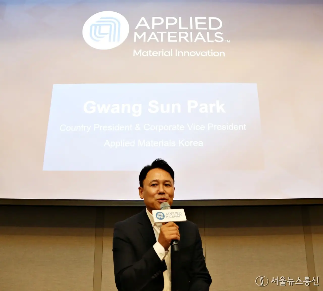 【서울 = 서울뉴스통신】 이민희 기자 =박광선 어플라이드 머티리얼즈 대표가 26일 서울 강남구 그랜드 인터컨티넨탈 서울 파르나스에서 열린 '어플라이드 AI 성능...