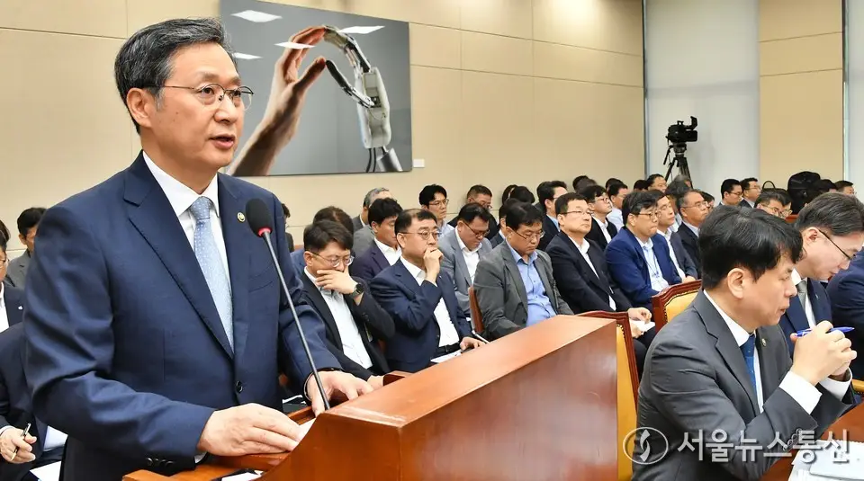 【서울 = 서울뉴스통신】 이민희 기자 = 윤형빈 우주항공청장이 20일 서울 여의도 국회에서 열린 과학기술정보방송통신위원회 전체회의에서 2024년 결산보고를 하고 있다. 2025.08.20....