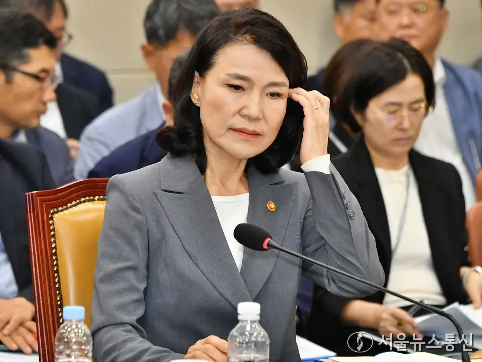 【서울 = 서울뉴스통신】 이민희 기자 = 이진숙 방송통신위원장이 20일 서울 여의도 국회에서 열린 과학기술정보방송통신위원회 전체회의에서 머리카락을 넘기고 있다. 2025.08.20. / 서울뉴스통신...