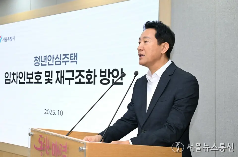 【서울 = 서울뉴스통신】 이민희 기자 = 오세훈 서울시장이 2일 오전 서울시청 브리핑룸에서 열린 청년안심주택 임차인보호 및 재구조화 방안 기자설명회에서 모두발언을 하고 있다. (서울시...