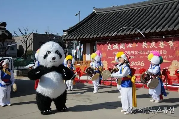 【서울 = 신화/서울뉴스통신】 권나영 기자 = '자매도시 한마음 함께하는 설맞이-지난(濟南)·수원 설날 문화 체험 행사'가 8일 경기도 수원시에서 열렸다. 중훙눠(鍾洪糯) 주한 중국대사관...
