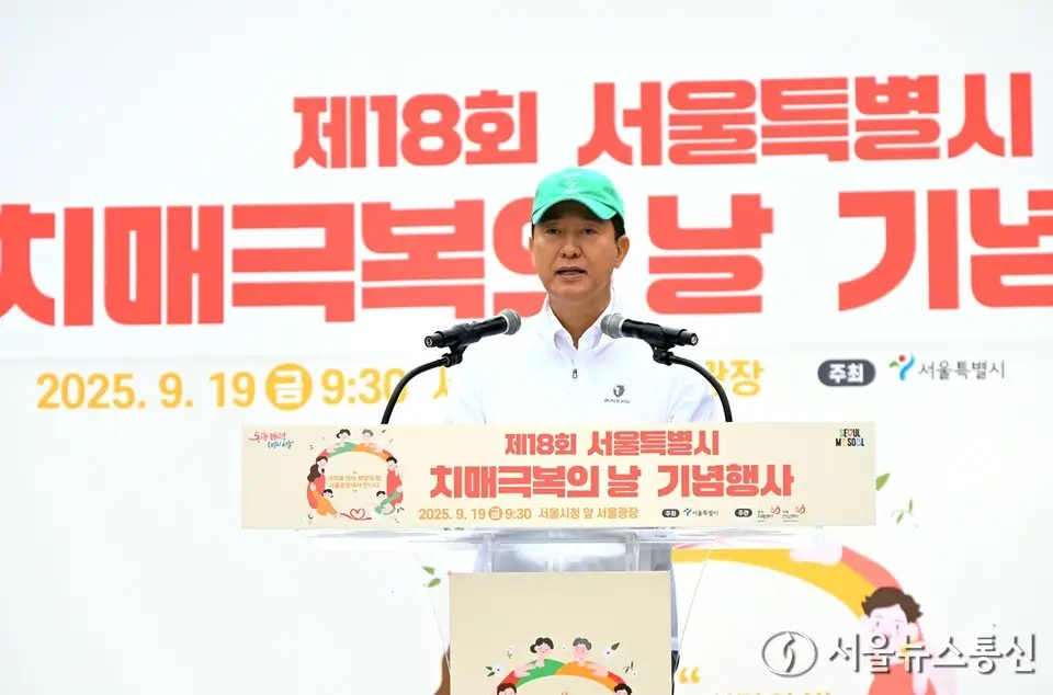 【서울 = 서울뉴스통신】 이민희 기자 = 오세훈 서울시장이 19일 오전 서울광장에서 열린 '제18회 서울시 치매극복의 날 기념행사'에서 인사말을 하고 있다. (서울시 제공) 2025.09.19. / snakorea.rc@gmail.com