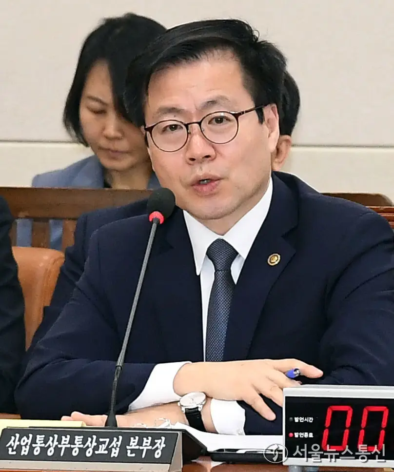 【서울 = 서울뉴스통신】 이민희 기자 = 여한구 산업통상부 통상교섭본부장이 4일 서울 여의도 국회에서 열린 대미투자특별법 처리를 위한 특별위원회 전체회의에서 질의에 답변하고 있다. 2026.03.04. nimini73@daum.net