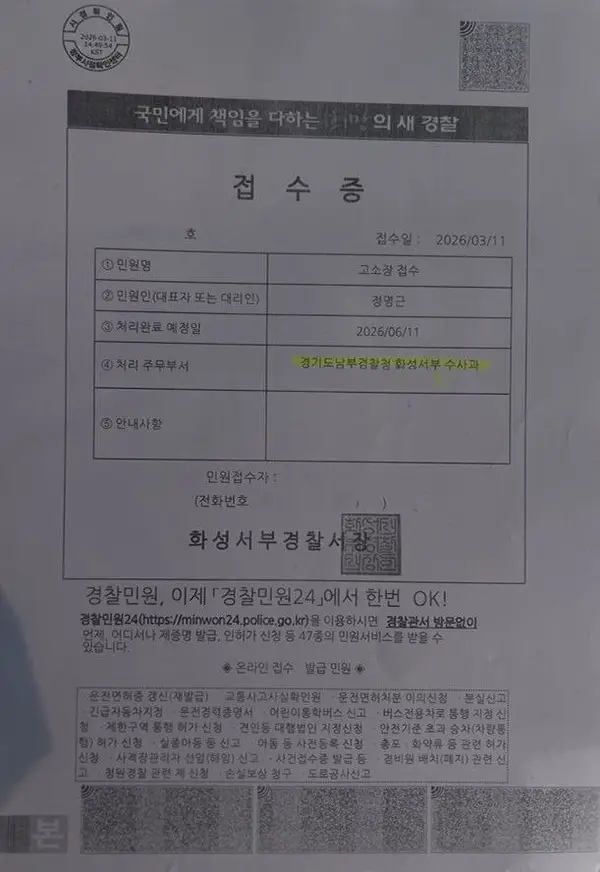 【경기·남부 = 서울뉴스통신】 김인종 기자 = 정명근 화성특례시장은 11일 최근 화성지역 한 인터넷 언론사의 금품수수 의혹 보도에 대해 명예훼손 등의 혐의로 화성서부서에 고소장을 제출했다.