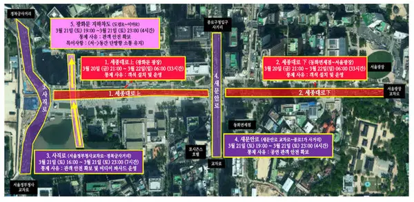 행사 당일 광화문 주변 주요 도로인 세종대로, 사직로, 새문안로 등은 경찰 협조 하에 구간별 통제가 실시된다.