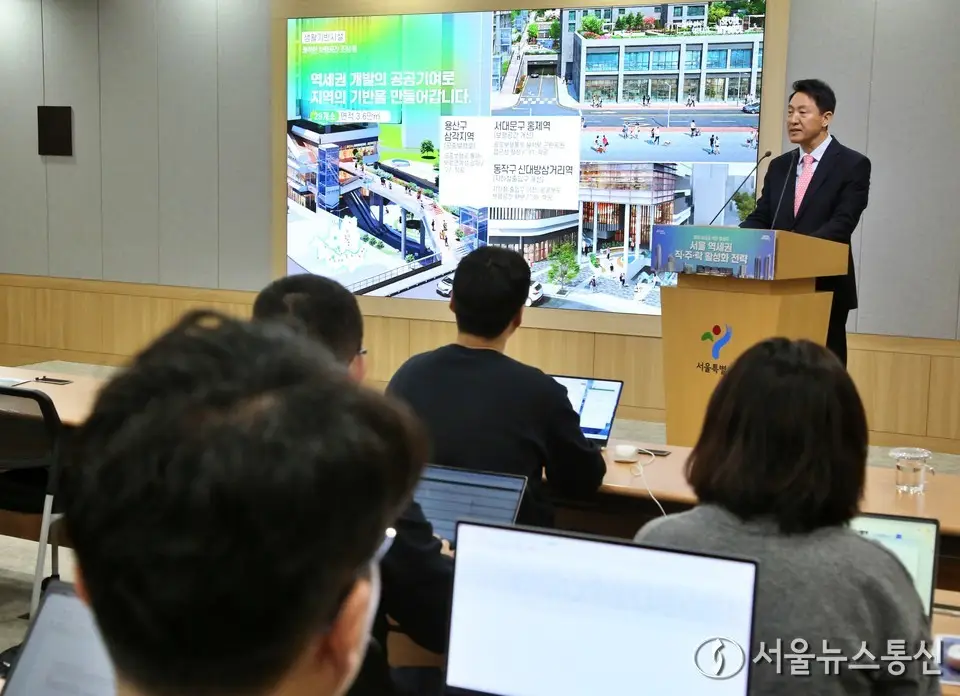 서울 역세권 직·주·락 활성화 전략 발표하는 오세훈