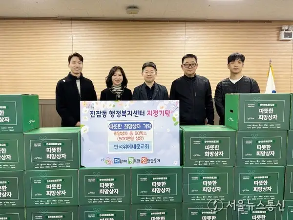 【대전·충남 = 서울뉴스통신】 조윤찬 기자 = 대전 유성구는 8일 진잠동 반석위에세운교회가 총 500만원 상당의 ‘따뜻한 희망상자’ 50상자를 기탁했다고 밝혔다.