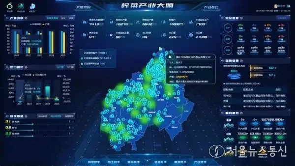 【서울 = 신화/서울뉴스통신】 권나영 기자 = 충칭(重慶)시 푸링(涪陵)하이테크산업개발구에 위치한 자차이(榨菜·절임채소의 일종) 산업발전센터에 들어서면 대형 모니터에 생산·판매 데이터와 재배 모니터링 화면 등이 실시간으로 표시된다. 이와 함께 밭의 채소부터 식탁 위 아삭한 자차이까지 이어지는 전체 산업사슬 흐름도 한눈에 파악된다.