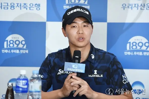 26일 경기 파주 소재 서원밸리CC에서 열린 한국프로골프투어 2026 우리금융챔피업십 파이널 라운드에서 우승한 최찬이 미디어센터서 인터뷰 하고 있다. 사진 이민희 기자 2026.04.26, snakorea.rc@gmail.com , *재판매 및 DB 금지