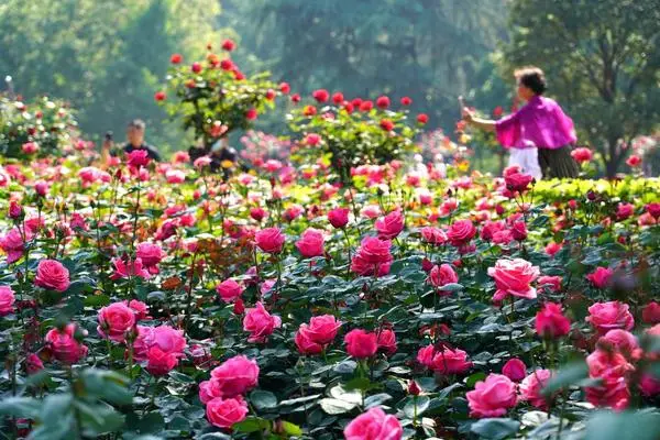 【서울 = 신화/서울뉴스통신】 권나영 기자 = 포근한 봄 날씨 속 주말을 맞아 사람들이 봄나들이를 즐기며 휴일의 여유를 만끽하고 있다. 26일 저장(浙江)성 항저우(杭州)시의 한 화원에서 월계화를 감상하는 시민들.