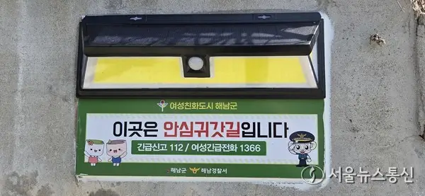 【광주·전남 = 서울뉴스통신】 김재희 기자 = 전남 해남경찰서(서장 박미영) 황산파출소는 지난 24일 주민들이 야간에도 안심하고 귀가할 수 있는 환경을 조성하기 위해 ‘안심귀갓길 솔라안심등’을 설치했다고 밝혔다.