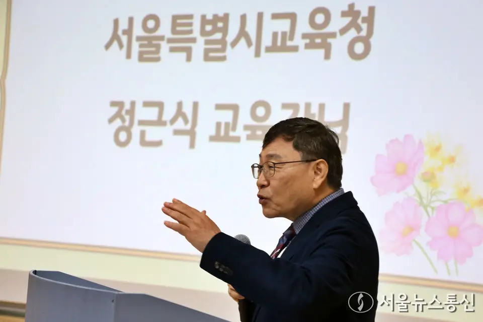【서울 = 서울뉴스통신】 이민희 기자 = 정근식 서울시교육감이 27일 서울 동작구 공립단설 서울상도유치원에서 열린 이전식에서 축사하고 있다. 2025.11.27. snakorea.rc@gmail.com