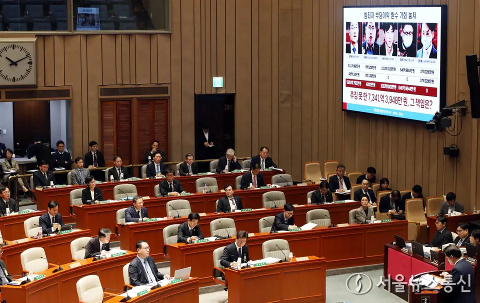 【서울 = 서울뉴스통신】 이민희 기자 = 정성호 법무부 장관이 12일 서울 여의도 국회에서 열린 예산결산특별위원회 전체회의에서 배준영 국민의힘 의원 질의에...