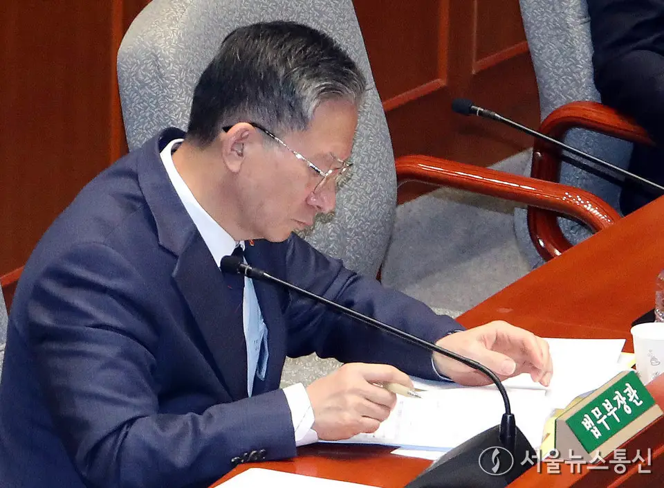 【서울 = 서울뉴스통신】 이민희 기자 = 정성호 법무부 장관이 12일 서울 여의도 국회에서 열린 예산결산특별위원회 전체회의에서 자료를 살펴보고 있다. 2025.11.12. snakorea.rc@gmail.com