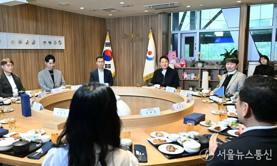 【서울 = 서울뉴스통신】 이민희 기자 = 오세훈 서울시장이 26일 서울시청에서 열린 ‘CES 2026 혁신상 수상 기업 간담회’에서 대화를 나누고 있다. (서울시 제공) 2026.01.26....