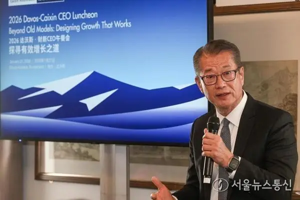【서울 = 신화/서울뉴스통신】 권나영 기자 = 폴 찬(陳茂波) 중국 홍콩 특별행정구(특구) 정부 재정사(司) 사장이 21일(현지시간) 스위스 다보스에서 열린 세계경제포럼(WEF) 2026년...
